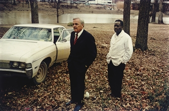 I don't know if Laub had this image in mind when she took hers. But the placement of the figures, and the oddly plantation-like setting of Kuczynski's Southampton home (lushly green, and neo-classical columns on a porch to boot), reminded at least this viewer of Eggleston's timeless image of the deep South.